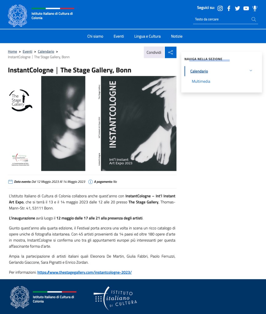 Dear all, my next stop will be in Germany 🇩🇪 at @thestagegallery for #instantcologne2023 May 12th 13th 14th.
