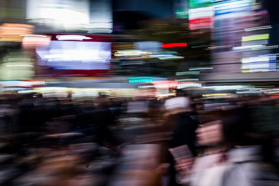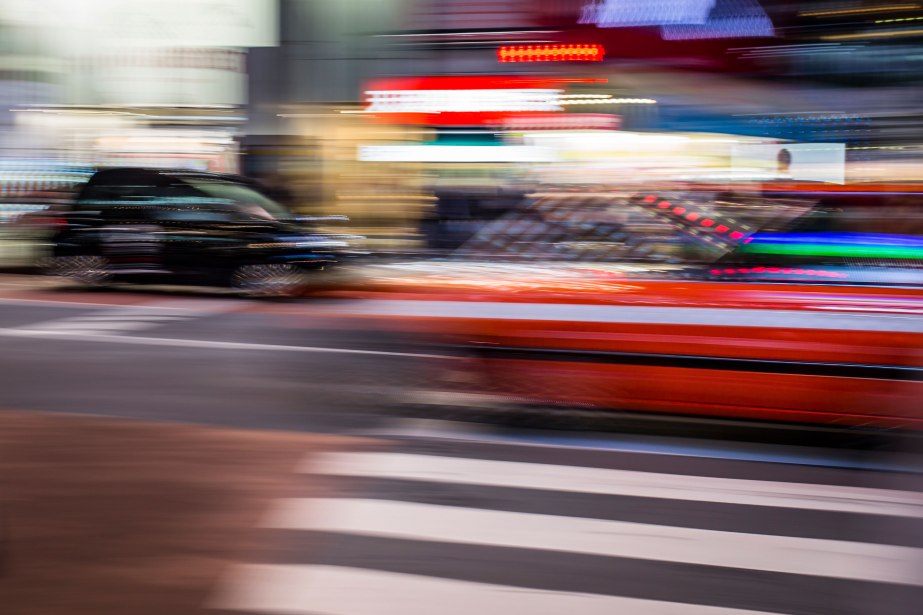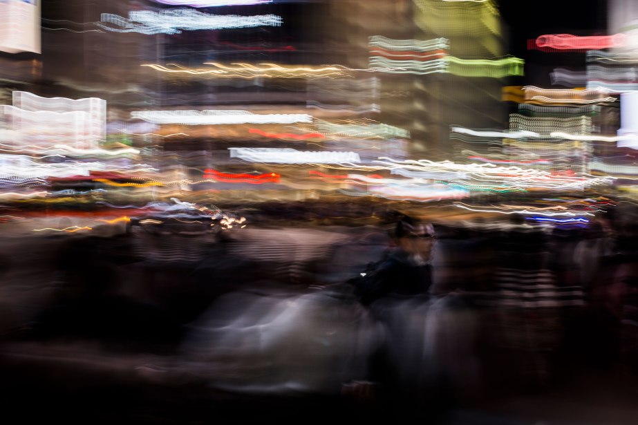 Reportage di viaggio in Giappone. Street Photography in lunga esposizione in notturna a Shibuya, Tokyo.